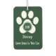 This elegant paw print car freshener adds warmth and emotion to every drive. It features the name "Daisy" along with the heartfelt phrase "Love Lives In This Car," transforming your car's interior into a reflection of devotion and joy. The soft white tones set against a dark green background create a modern and touching look. Perfect for dog lovers who carry their love with them wherever they go—adding this freshener to your car will make every ride feel more personal. Click the optional "personalize" button to change the text and image.