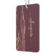 Personalize this elegant modern design with your name in vertical gold-colored signature handwriting script on a burgundy red background with a border of burgundy watercolor agate trimmed with gold faux glitter. (To keep the swashes at the beginning and end of the name, replace only the letters, leaving the symbols in place.)