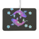 Pescado de koi morado de estilo oriental rodeado de flores azules sobre un fondo negro.