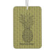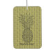 Prepare for your auto traveling adventures with an air freshener featuring a dark pineapple outline pattern over a pastel green background and a centered large black pineapple outline. You can keep the template text, personalize and/or edit using the design tool to select a font style, size, and color you prefer. A text change will appear on both sides.