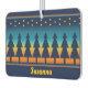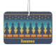 Personaliza este ambientador con tu nombre o texto en un diseño inspirado en los hermosos cielos de puesta de sol y los altos pinos Ponderosa de Arizona. Esta obra de arte original presenta un cielo de puesta de sol naranja, amarillo y azul brillante detrás de árboles geométricos ponderosa y estrellas amarillas sobre un fondo azul profundo.