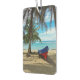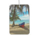 Pura Vida en Costa Rica. Barco en una playa tropical con cocoteros y el mar Caribe de fondo, Puerto Viejo de Talamanca - Costa Rica