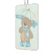 Acuarela lindo pequeño Oso de Teddy en la lluvia usando botas de lluvia azules con un paraguas azul