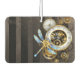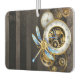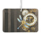 Diales antiguos con artes de oro y latón, decorados con libélula mecánica sobre fondo marrón, rayado. Steampunk.