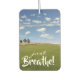 Este bonito paravientos no sólo hará que tu coche huela mejor, sino que también te animará a permanecer tranquilo detrás del volante. Cuenta con una hermosa foto paisajística de pastos verdes con un espléndido cielo azul encima y la leyenda: Just Breathe!