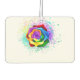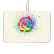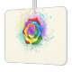 Rosa grande y floreciente con pétalos de arco iris sobre fondo blanco, pintado con salpicaduras de pintura colorida y brillante. 3.ª