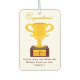 Este sarcástico trofeo dorado de estacionamiento galardonado con el premio air freshener para un vehículo es para el primer lugar ganador del peor trabajo de estacionamiento del mundo. Es una manera divertida de decir algo sobre el terrible trabajo de estacionamiento de alguien. El texto de atrás "¡Apestas al estacionamiento!! y Aprende a conducir!" es personalizable, junto con el color de fondo.