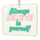 Infunde su auto con positividad y motivación con este "siempre crea en usted mismo" fresador de coche. Cada vez que te subas a tu vehículo, te recordarán que tienes confianza, te inspirarás y te potenciarás. Créate en ti mismo y deja que este coche más fresco sea tu recordatorio diario para perseguir tus sueños y alcanzar tus metas.