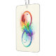 Símbolo de infinito dibujado artísticamente con una hermosa pluma arco iris sobre fondo blanco. Estilo tatuaje.