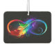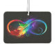 Símbolo de infinito dibujado artísticamente con una hermosa pluma arco iris sobre fondo blanco. Estilo tatuaje.