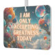Transforme su viaje diario a un viaje de grandeza con nuestro auto-protector de aire con el inspirador mensaje "Sólo estoy aceptando grandeza hoy". Infunde tu vehículo con un olor refrescante y una afirmación positiva para mantenerte motivado y animado en la marcha. El diseño original, situado en una tierra de fantasía con burbujas, le da un toque de encanto al interior de su coche. ¡Aumenta tu experiencia de conducir con este encantador accesorio!
