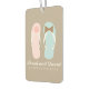 El diseño de un boda y un aniversario delicioso y dulce presenta un par de sus sandalias "flip flop" y puede ser personalizado con sus nombres y fecha de boda para un favor perfecto de la boda, guardar los anuncios de fechas, mantener el sake, etc.