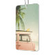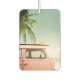 Este diseño de estilo tropical retro cuenta con una furgoneta con tabla de surf en la azotea y la playa al fondo. #surf #retro #surfer #sport #playa #tropical #relax #surf #diversión #genial #diseño #estilo #moda #escuela #oficina #trabajo #casa #auto #auto #automóvil #automoción