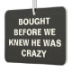 Este es un pintor de aire blanco y negro que dice, "Comprado antes de que supiéramos que estaba loco", haciéndolo perfecto para cualquier dueño de Tesla. Es fácil de personalizar con cualquier dicho, y hace un regalo maravilloso.