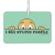 Parodia de "Veo personas estúpidas" de "Veo personas muertas". Divertido dicho con un personalizado que aspira con un fondo beige/marrón que se puede cambiar a tu elección personalizándolo.