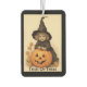A cada lado de este coche se muestra una imagen vintage y adorable de una niñita bruja y su gran calabaza sonriente. Con el mensaje "Feliz Halloween" y el aroma del "auto nuevo", esto hace una gran decoración en tu auto o como un pequeño regalo para Halloween!