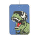 Gracioso T-rex con auriculares y auriculares de realidad virtual.