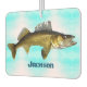 Este diseño presenta un lucio de estilo walleye sobre un fondo acuoso.