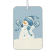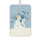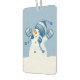 Feliz hombre de nieve con gorra y mitones en un cielo azul con copo de nieve