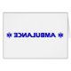 Ambulancia (al revés, apenas como en el frente del auténtico) flanqueada por la estrella de la vida