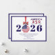 Celebre la temporada y el hito histórico número 250 de Estados Unidos con esta elegante tarjeta de vacaciones patriótica. Con la fecha 2026 y un adorno festivo diseñado en la bandera estadounidense y un saludo navideño personalizable, este diseño de América 250 combina la calidez de la Navidad con felicitaciones de Año Nuevo y orgullo en un año electoral.