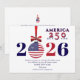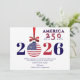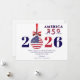 Celebre la temporada y el hito histórico del 250 aniversario de Estados Unidos con esta elegante tarjeta de vacaciones patriótica. Con la fecha 2026 y un adorno festivo al estilo de la bandera estadounidense y un saludo navideño personalizable, este diseño de América 250 combina la calidez de la Navidad con felicitaciones de Año Nuevo y orgullo en un año electoral.