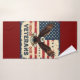 The image features a heroic bald eagle with its wings spread wide in a position of strength and protection. It is set against a distressed, vintage American flag backdrop, giving it a timeless "Americana" feel.