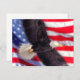 American Eagle con la bandera americana en la invitación del fondo
