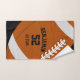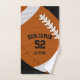 Celebrate your team spirit with this fully editable American football sports towel, featuring a classic stitched-football background and custom text fields for the player’s name, team name, and jersey number. Perfect for athletes, coaches, supporters, gym use, team gifts, or end-of-season events, this towel brings a personalised professional look to any sports kit.