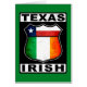 Los irlandeses de Tejas diseñan, en el estilo de una muestra americana fresca de la ruta del camino. El irlandés de Tejas del texto está a lo largo del top y de la parte inferior, con la bandera del estado de Tejas y la bandera del Irlanda dentro de la muestra de la ruta. Grande para los Texans de la pendiente irlandesa, y para las ex-palmaditas en el estado solitario de la estrella.