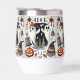 Sumérjase en este agradable vaso de vino fantasma de Halloween / vaso de agua. El diseño tiene fantasmas de Halloween bailando, jack de linternas y demonios. El texto se puede personalizar fácilmente con la tipografía moderna de la herramienta de Zazzle y los guiones disponibles.