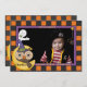 Una invitación festiva, juvenil, de la foto que ofrece un marco del tablero de damas del naranja y del negro, un fantasma amistoso, una araña que cuelga, un búho y media luna. Apenas añada su foto preferida para una invitación deliciosa de Halloween.