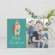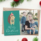 Comparte el espíritu festivo enviando a tus seres queridos nuestra tarjeta de fotos de vacaciones Amigos del Invierno. La linda tarjeta de fotos de las vacaciones muestra a un erizo personalizado usando un gorra de invierno y sosteniendo un regalo con "Feliz Navidad" que se muestra abajo en un guión moderno de caligrafía. Personaliza la tarjeta de vacaciones añadiendo tu nombre y foto favorita. La parte posterior de la tarjeta presenta un verde azulado patrón de puntos verde y blanco.