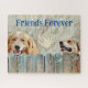 Obra de arte original con mi fotografía original de dos perros dulces detrás de una valla con grandes sonrisas, añadí un corazón rústico entre ellos y estilizó la imagen con una técnica de pintura impresionista para su apariencia artística. También añadí las palabras "Amigos para siempre". El tamaño de este singular y lindo rompecabezas es de 16" x 20", sin embargo usted puede tener el tamaño de arriba o abajo que desee. Estos rompecabezas están bien hechos de cartón robusto montado en el portapapeles. Están impresas en colores vivos y vienen en una caja de regalo personalizado con el diseño de la imagen impreso en la parte superior. Hecho en los Estados Unidos y estos hacen grandes regalos para niños y adultos.