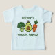 Esta encantadora camiseta personalizada para niños muestra a tres adorables personajes vegetales tomados de la mano. Una sonriente ola de brócoli, un alegre aguacate lleva el gorra del capitán, y una alegre zanahoria se pone a su lado, con la frase "Escuadrón de Snack".
