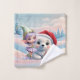 Amigos en un mundo de fantasía. El oso polar bebé lindo con ojos grandes y curiosos. Su suave y blanca piel brilla bajo el sol invernal, elfo pequeño y un pájaro lindo esperan con ansias la temporada de Navidades.