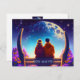 Esta tarjeta muestra a una pareja sentada en un banco, rodeada de flores y mariposas voladoras, por la noche a la luz de la luna y el cielo estrellado. Motivo romántico para los amantes y los mejores amigos. Adecuado para muchas ocasiones - El día de San Valentín, saludos a una novia o novio, esposa o esposo o sólo porque!