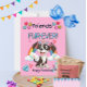 Un cachorro lindo que lleva una corona de flores y dos lazos rosados está listo para saludar a sus compañeros de clase y a los invitados como un juego de palabras "Amigos Fur-Iever". El dulce perro está sobre un fondo rosa con corazones coloridos y una nube de arcoíris detrás. Esta tarjeta es perfecta para el salón de clases, e incluso los maestros pueden dar un poco de amor a sus alumnos. Los abuelos apreciarán dar esta tarjeta a sus nietos. Compártela con tu familia, amigos, en la fiesta del Día de San Valentín en casa, en el vecindario, en refugios, en la iglesia o con cualquier persona con la que tu hijo pueda hacerse amigo.