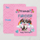 Un cachorro lindo que lleva una corona de flores y dos lazos rosados está listo para saludar a sus compañeros de clase y a los invitados con un juego de palabras "Amigos Fur-Ieveramente". El dulce perro está sobre un fondo rosa con corazones coloridos y una nube de arcoíris detrás. Esta tarjeta es perfecta para el salón de clases, e incluso los maestros pueden dar un poco de amor a sus alumnos. Los abuelos apreciarán dar esta tarjeta a sus nietos. Compártela con tu familia, amigos, en la fiesta del Día de San Valentín en casa, en el vecindario, en refugios, en la iglesia o con cualquiera con quien tu hijo pueda hacerse amigo.