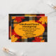 Invite a tus personas favoritas a una cena de Acción de Gracias con amigos y franela a cuadros con esta tarjeta de invitación chic y vibrante. Este diseño presenta un motivo de hoja de otoño con cuadros, perfecto para una reunión de otoño elegante y festiva. La escritura en negrita anuncia "Acción de Gracias con amigos y franela", con todos los detalles importantes en el interior. Esta tarjeta personalizable es una forma fácil y elegante de enviar tus invitaciones. ¡Solo agrega los detalles de tu evento personal y listo!