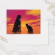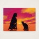 Silueta negra de un gato al lado del perro sentado mirando la bella puesta de sol roja