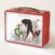 Un hada asiática haciendo un nuevo amigo en un pequeño dragón verde chino con flores de cerezo rosas como telón de fondo
