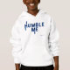 Esta hoodie de niños muestra las palabras "Humble Me" en un tipo de letra original original con un contorno azul de letra negra más acento y diseño coincidente en la parte posterior de esta cita Inspiradora estilo y tema de AMMO Apparel USA. Este capuchón está hecho de una mezcla de algodón de 10 oz y mangas de ajuste de la cara al 100% de algodón, agujeros de armadura con doble aguja y banda inferior para mayor durabilidad.