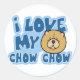 ¡Tienes que tener estos pegatinas de Chow! Una cabeza kawaii de Chow Chow está a la derecha, con una impresión azul gorda de dos tonalidades rodeándola. El texto dice: "Amo a mi Chow". Mercadería extra adorable de Chow Chow para los amantes del perro. Ofrecemos este diseño en una amplia selección de otros artículos incluyendo camisetas y más!