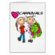 Una figura muchacho del palillo con un perro de maíz y un palillo figuran al chica con un peluche y un texto grandes que siga leyendo "las camisetas de los carnavales del amor de los carnavales" I (del corazón), las tazas, las bolsas de asas, las tarjetas, los pegatinas, y la otra figura linda artículos del palillo que para requisitos particulares usted puede modificar con el nombre o el otro texto.