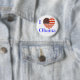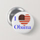 Amo el botón de Obama con las letras azules intrépidas. El corazón rojo, blanco y azul hermoso de la bandera de los E.E.U.U. adorna este botón de la campaña de Barack Obama.