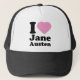 Amo el gorra de Jane Austen. Un gorra que ofrece la frase "amo a Jane Austen," en fuente del negro del tonelero con un corazón rosado. Un gran regalo para las fans de Jane Austen, orgullo y perjuicio, y escritores de las mujeres.