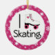 Amo lema patinador del corazón tengo logotipo patinador lindo del rosa y blanco de la bota. Gran regalo para los chicas que aman patinar. Frontera y parte posterior rosadas y blancas del copo de nieve en esta versión bilateral de nuestro regalo del ornamento. también tenemos una versión un echada a un lado en nuestra tienda con un descuento de tres dólares.