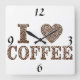 Muestre a mundo cómo usted siente sobre su café con este reloj impresionante. "AMO EL CAFÉ" me deletreo hacia fuera en granos de café. Los números que marcan los cuartos de cada hora se escriben en negro, para hacer juego los brazos del reloj. Sin embargo, los números y el fondo son adaptables.
