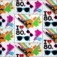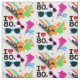 ¡Si usted ama los años 80 y todo lo que tiene que ofrecerle amará esto amor de I la tela de los años 80 que ofrece colores de neón brillantes, las gafas de sol de rosado y azul, las zapatillas de deporte superiores del alto en negro, las rosas fuertes, y verde lima, los arco iris, las salpicaduras de la pintura, y el texto que lee el corazón de I los años 80!